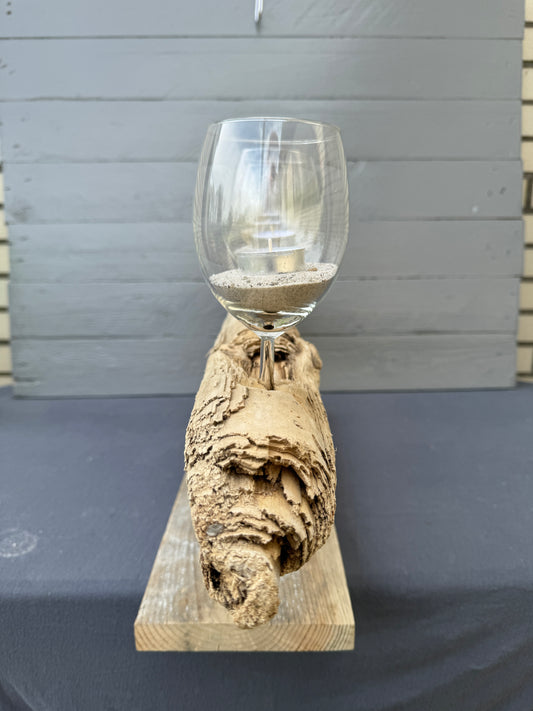 Adventsgesteck aus Treibholz – Unikat „Küstenglas“ mit Weingläsern