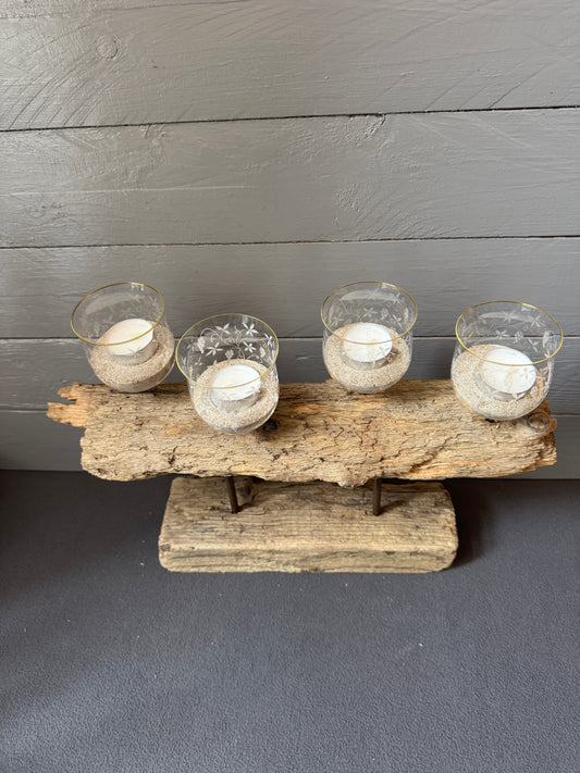 Treibholz-Kerzenständer „Grömitz“ – 4 Gläser, maritim & handgemacht