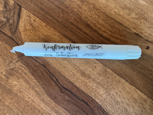 Personalisierte Kerzentattoos zur Konfirmation – mit Fischsymbol & blauem Namen (PDF)