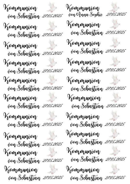 Personalisierte Kerzentattoos zur Kommunion mit Taube – PDF-Vorlage für Stabkerzen