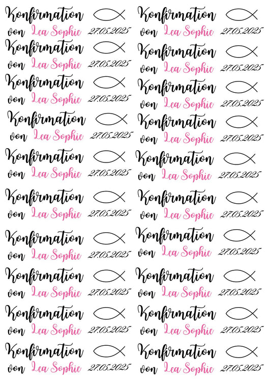 Personalisierte Kerzentattoos zur Konfirmation – mit rosa Namen & Fischsymbol (PDF)