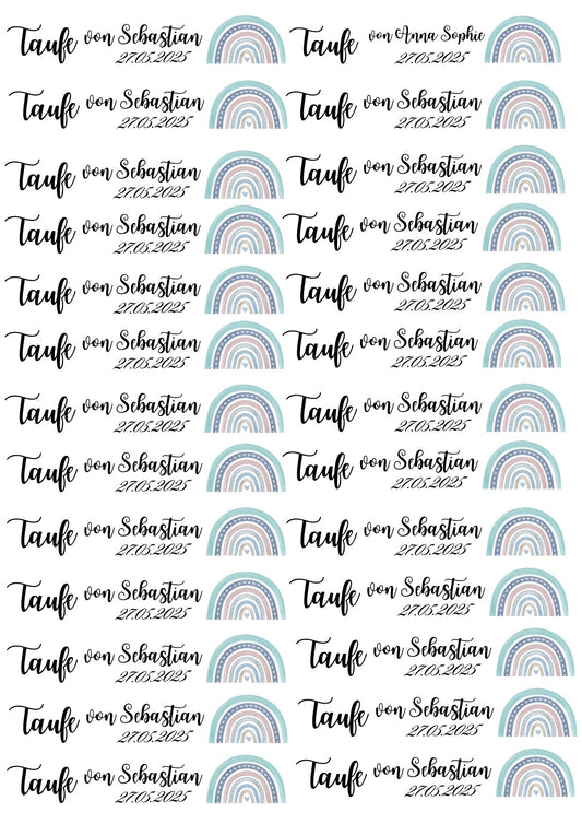 Personalisierte Kerzentattoos zur Taufe – Blauer Regenbogen mit Name & Datum (PDF)