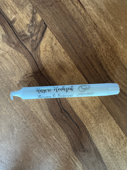 Kerzentattoos Hochzeit als PDF – personalisierbare Stabkerzen mit Brautpaar & Datum