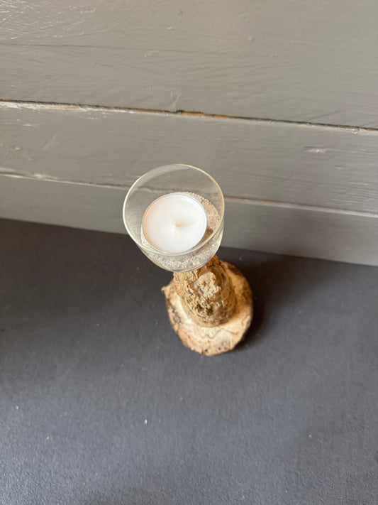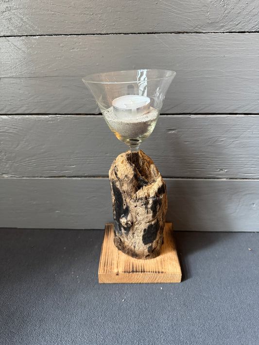 Kerzenständer „Küstenflair“ – Treibholz & Baumscheibe mit Teelichtglas