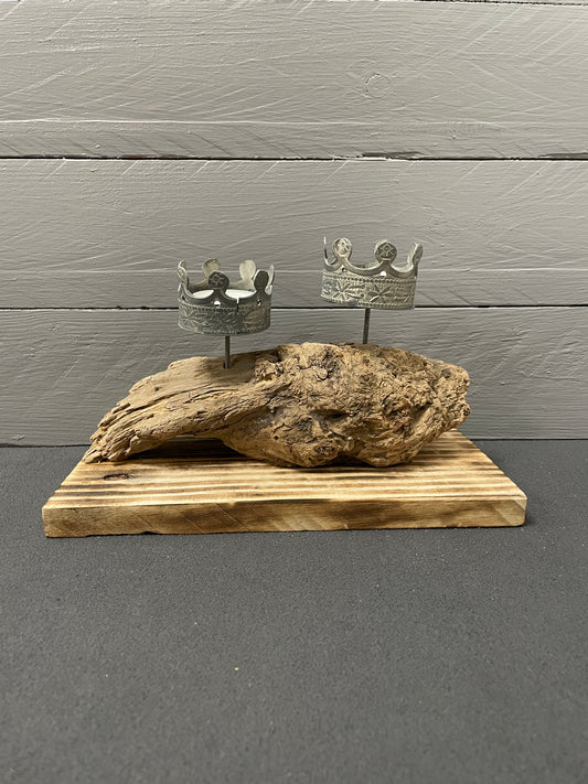 Treibholz-Doppelkerzenständer „Küstenkrone Travemünde“ – 2-flammig & maritim