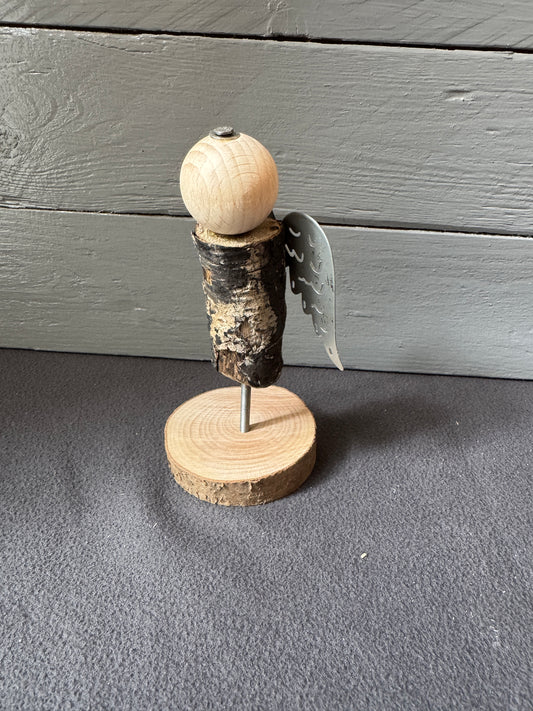 Engel Floriel aus Treibholz mit silbernen Flügeln