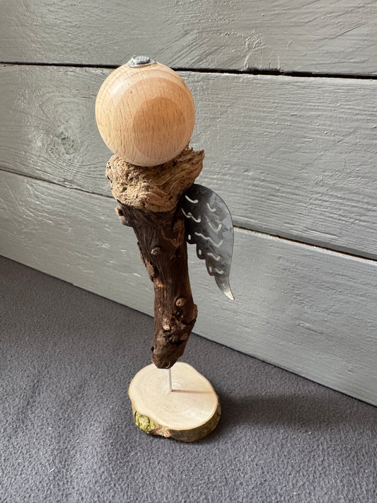 Engel Soliel aus Treibholz – Handgemacht mit silbernen Flügeln