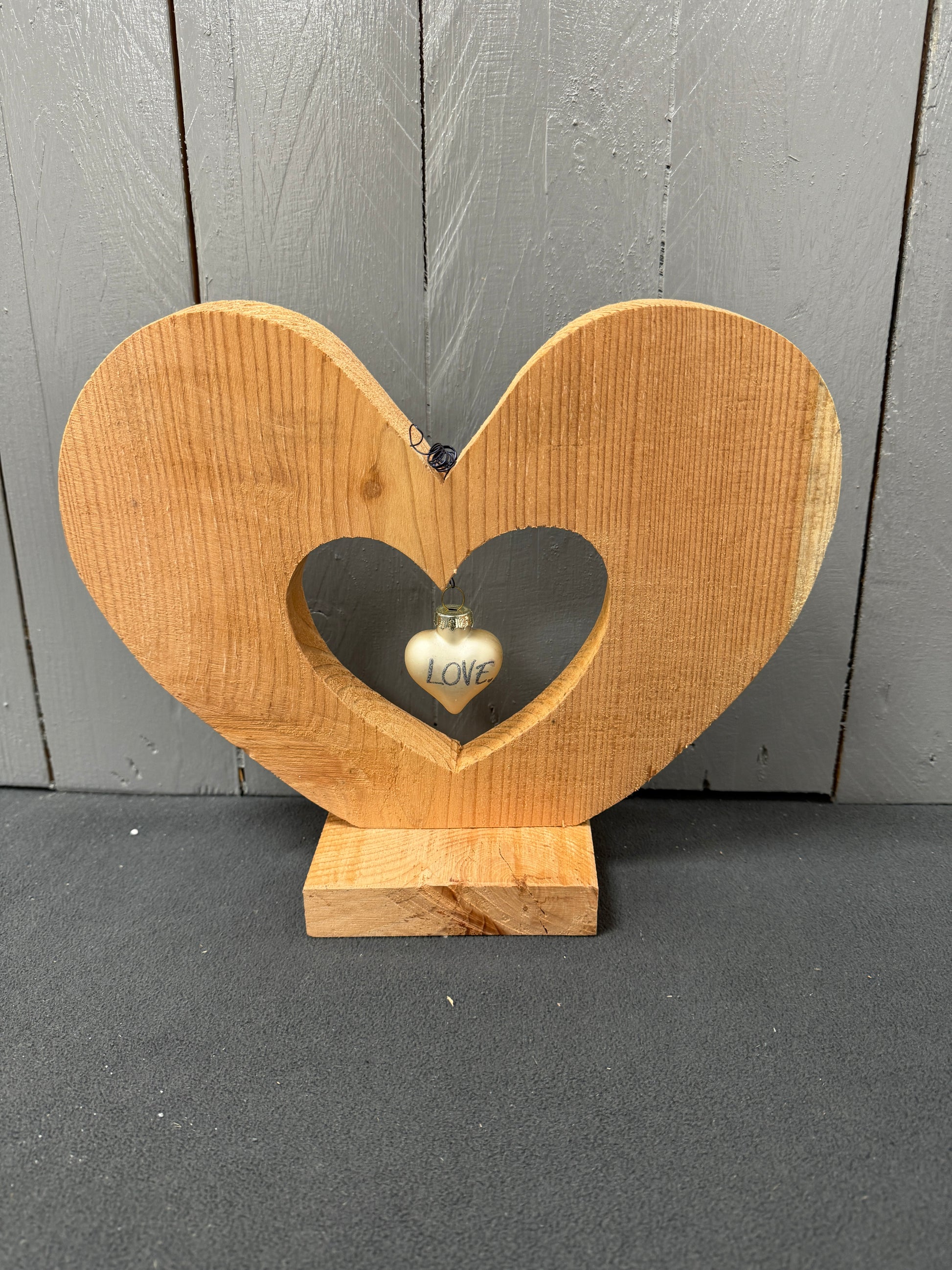 Valentinstag Holzherz mit kleinem Glas Herz drinnen