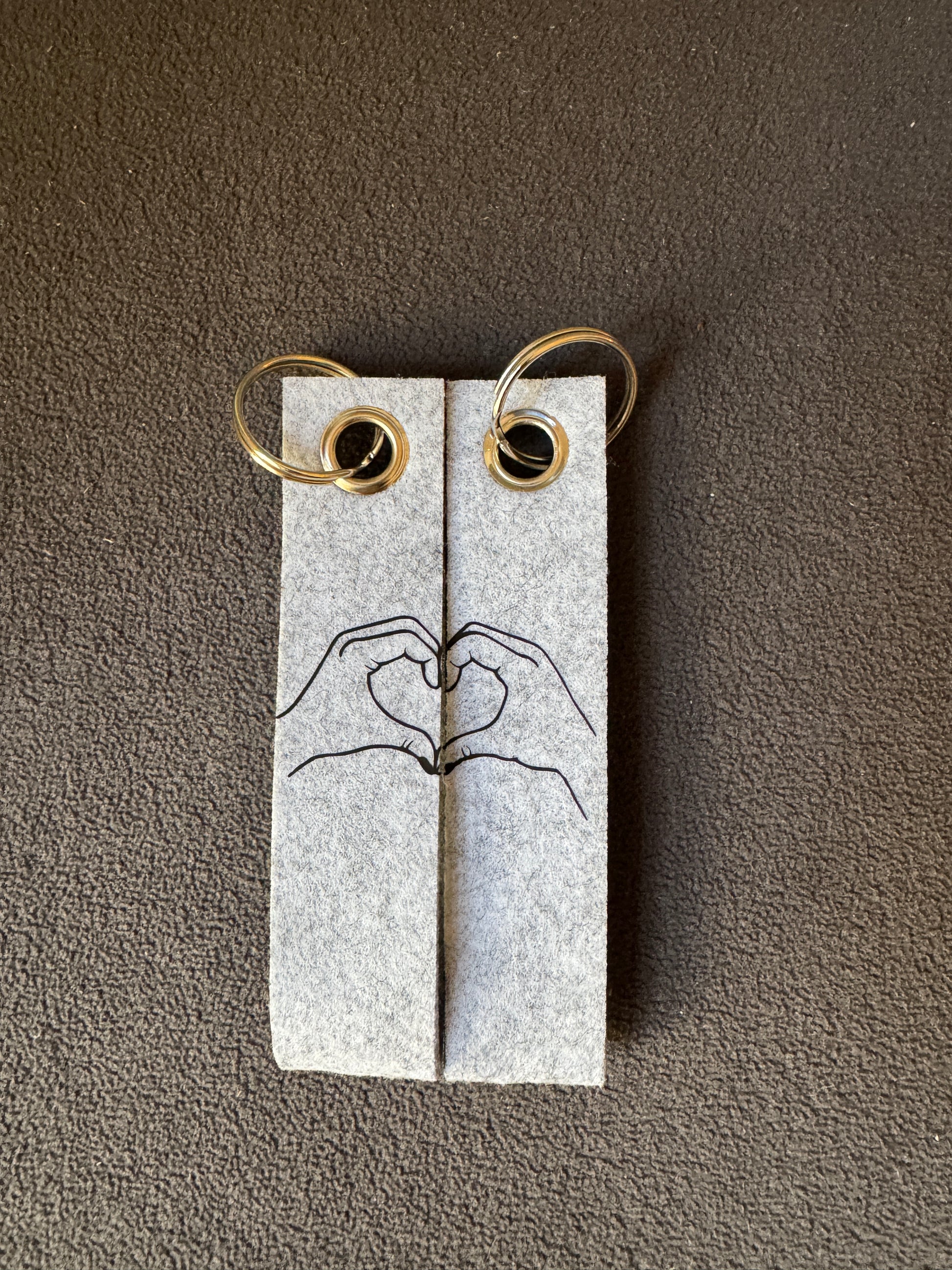 Die beiden Schlüsselanhänger ergeben zusammen ein wunderschönes Motiv: Zwei Hände formen ein Herz, das nur dann vollständig ist, wenn beide Anhänger zusammengefügt werden. Ein besonderes Detail für Paare, beste Freunde oder als süße Überraschung für einen Lieblingsmenschen.