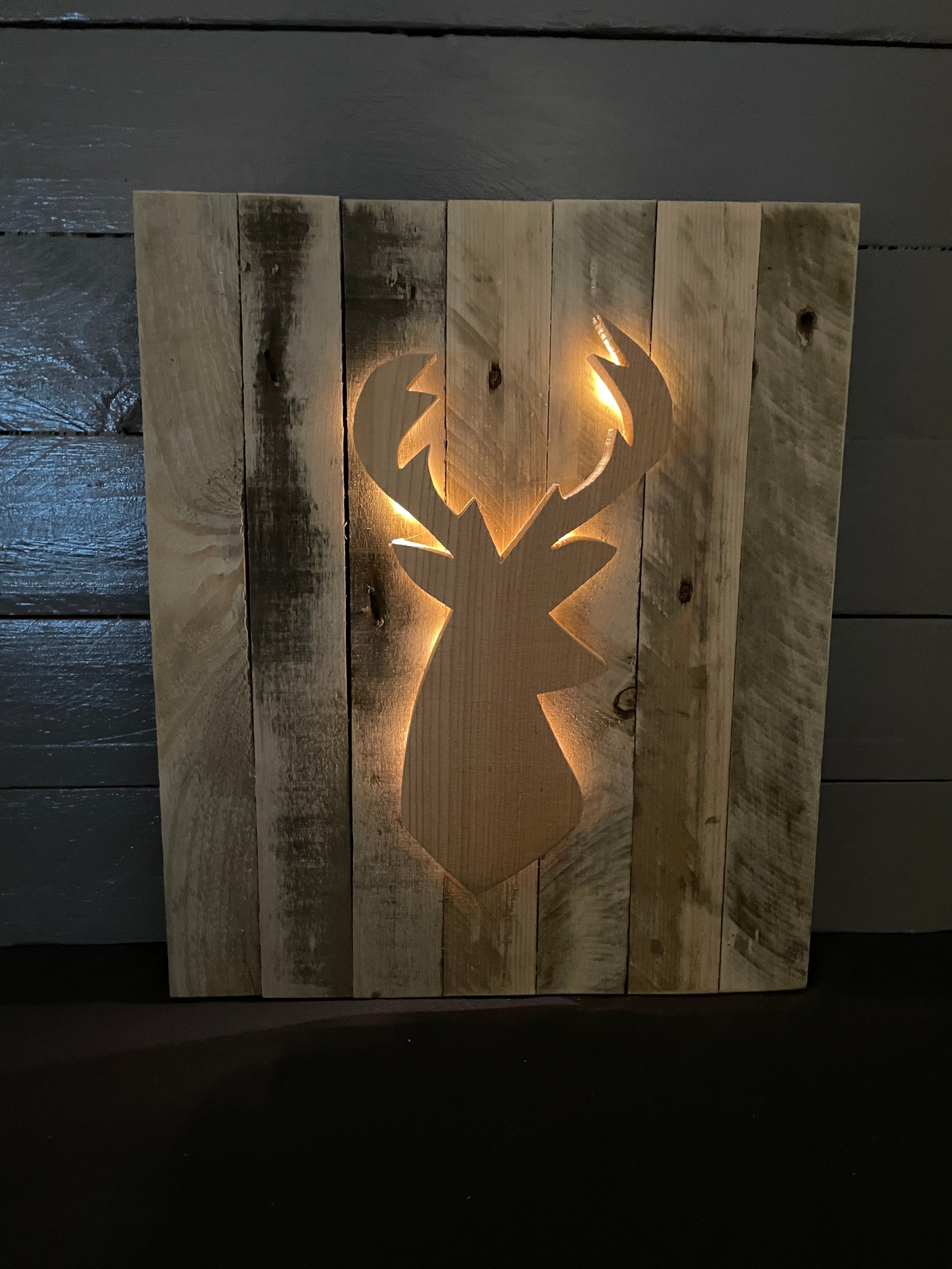 Wandbild mit 3D Hirschkopf und indirekter Beleuchtung